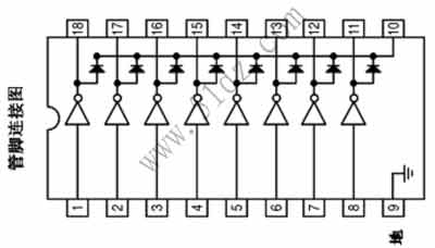ULN2803是一种高输入低输出的驱动器,内部电路如下: